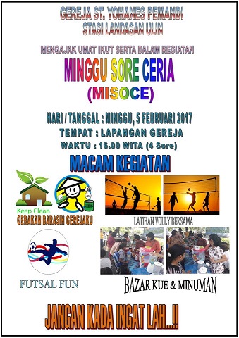 Pada hari Minggu, 5 Februari 2017 pukul 4 sore, dilakukan kegiatan yang dinamakan MISOCE (Minggu Sore Ceria)