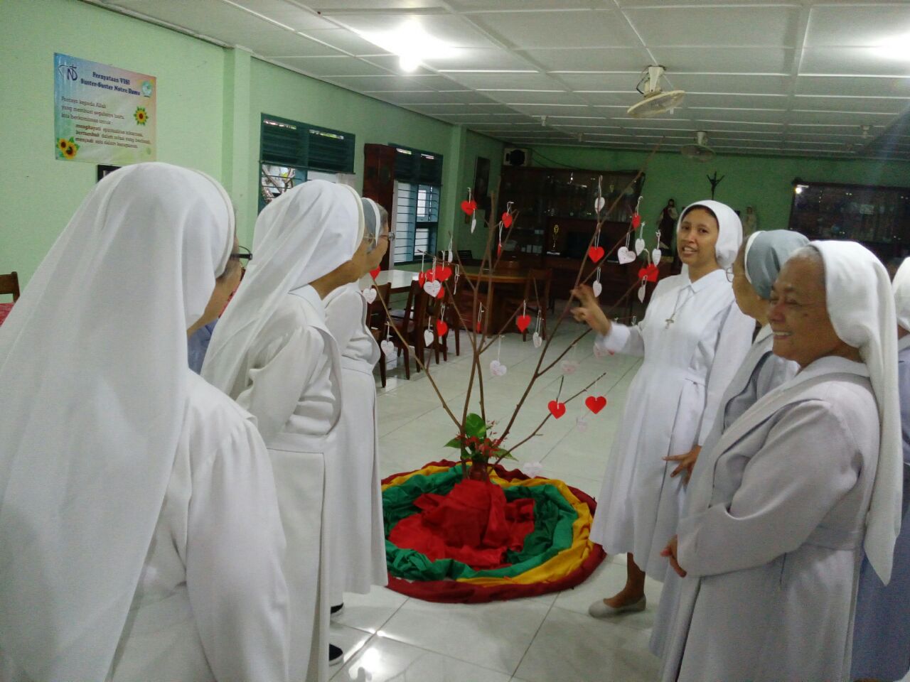 Di balik setiap hati sudah tertulis nama suster, setiap suster diajak untuk berbuat kasih...bisa dengan aneka bentuk…..bentuk kasih yang hendak dilakukan juga bebas...bisa melayani saat makan...mengambilkan minum..makan...mencucikan piring...mendoakan..dan lain-lain terserah pada kreativitas dari setiap suster untuk berbagi kasih.