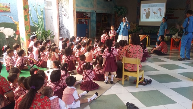 Sr Maria Yuliana mengajari anak-anak TK Santo Yosef untuk hidup sehat, mulai dari cuci tangan, gosok gigi sampai mengajari anak-anak itu cara mengobati yang terluka. Pelajaran itu yang di kemas dalam paket "dokter kecil"