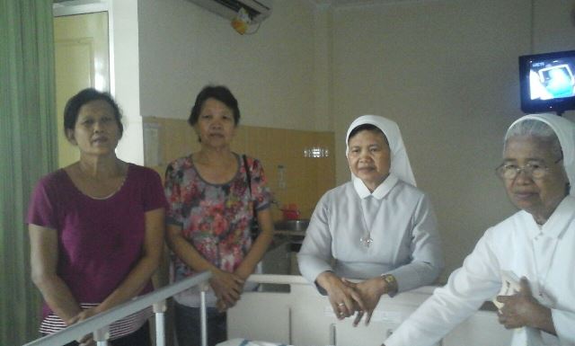 Mengunjungi dan menghibur pasien yang sakit merupakan kegiatan yang rutin dilakukan oleh suster-suster secara bergantian. Hadir, mendengarkan, menghibur dan mendoakan yang sakit di rumah sakit.