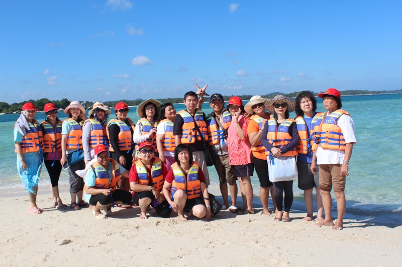 Selain mengunjungi dan mengangumi keindahan pantai. rombongan juga mengunjungi berbagai tempat wisata, salah satunya gunung kapur yang sudah hampir habis di tambang.