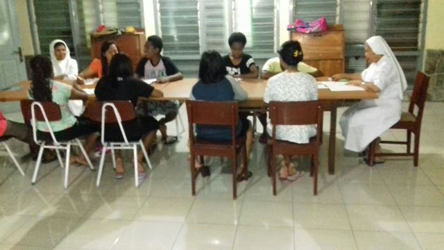 Suasana pertemuan para suster bersama anak-anak asrama.