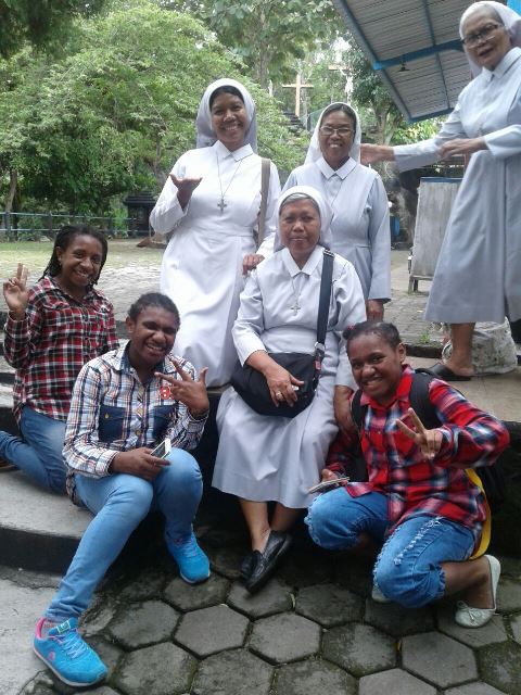 Rekreasi bersama para suster dengan anak-anak asrama ke gua Maria Rosa Mistika Tuntang.