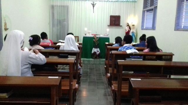 Doa rosario bersama (para suste? komunitas Sendang asih Mlati -Yogyakarta bersama anàk-anak asrama sebelum misa komunitas.