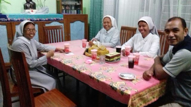 Dalam kesederhanaàn màkan bersma Rm. Danièl, SVD sètelah memimpin misa syukur HUT SND.