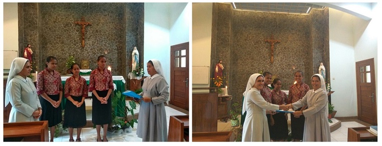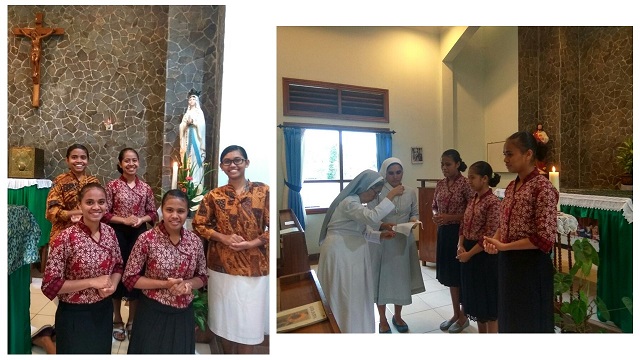 Pada tanggal 1 Februari 2018 yang lalu, Postulat di Salatiga menerima tiga orang pemudi yang merasa terpanggil untuk memasuki masa postulat tahun yang pertama di rumah pembinaan Salatiga. Mereka diantar oleh Sr Maria Kristiana SND yang mendampingi mereka selama di Aspiran. Mereka adalah Maria Goreti Silab (Reti), Nofriana Foni (Nofi) dan Maria Imelda (Elda) ketiganya berasal dari Timor. Mereka diserahkan oleh Sr Maria Kristiana SND Kepada Sr Maria Graciela SND yang akan mendampingi mereka selama mereka menjalani masa postulan di Salatiga ini. Mereka diterima memasuki masa postulan dalam ibadat sore bersama anggota komunitas Postulat. Sr Maria Klaudia SND memberikan mereka kalung salib sebagai lambang bahwa mereka sudah resmi diterima sebagai postulan SND Indonesia.