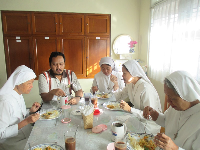 Makan bersama komunitas dengan romo sehabis misa harian di komunitas