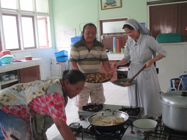 Menolong karyawan di dapur kalau peserta retretnya banyak.