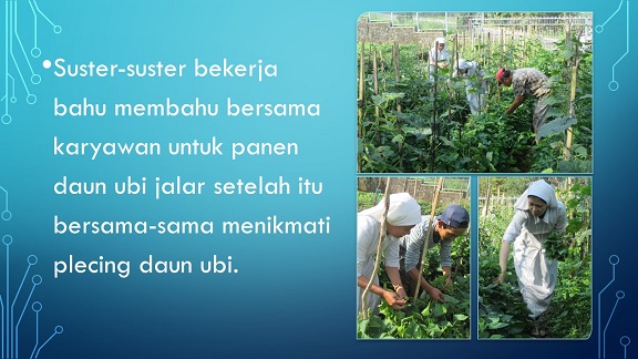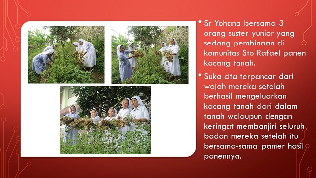 Ketika kongregasi mengadakan pameran hasil dari komunitas-komunitas, maka komunitas santo Rafealpun tidak ketinggalan dengan memamerkan hasil kebun dan makan-makan yang terbuat dari hasil kebun tersebut