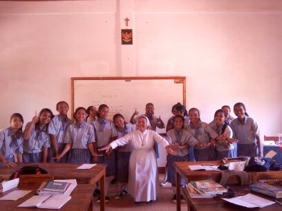 Sr Maria Kostka SND dan Sr Maria Monika SND menemani murid-murid pergi piknik